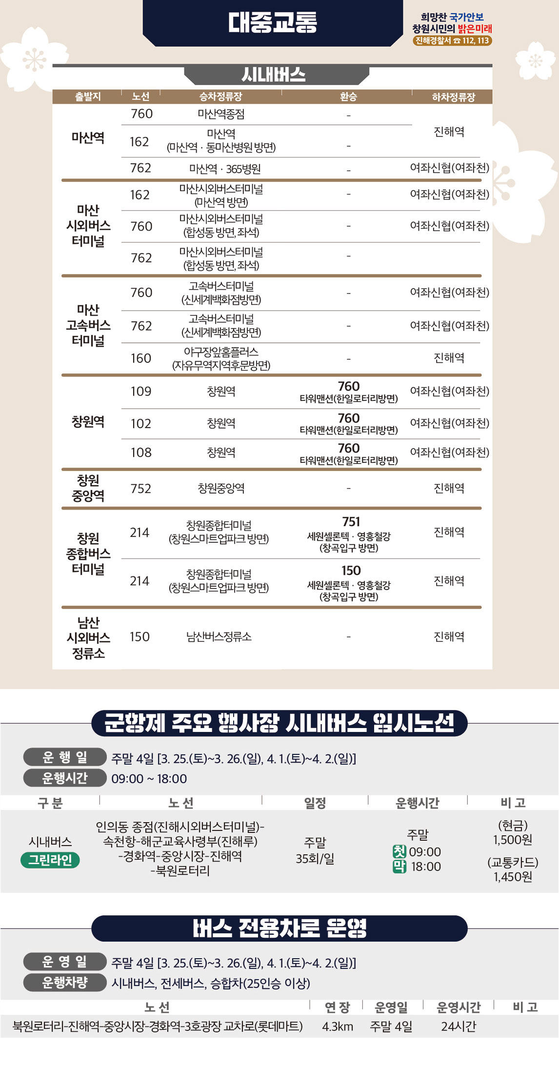 진해 군항제 시내버스 이용 안내