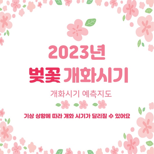 2023년 봄꽃 개화시기 만개시기를 알려주는 예측지도가 산림청에서 나왔습니다. 전국 대부분 3월 중순 무렵 봄꽃이 개화되기 시작해서 4월 중순쯤 전국적으로 개화가 절정에 이를 것으로 예측하고 있습니다.